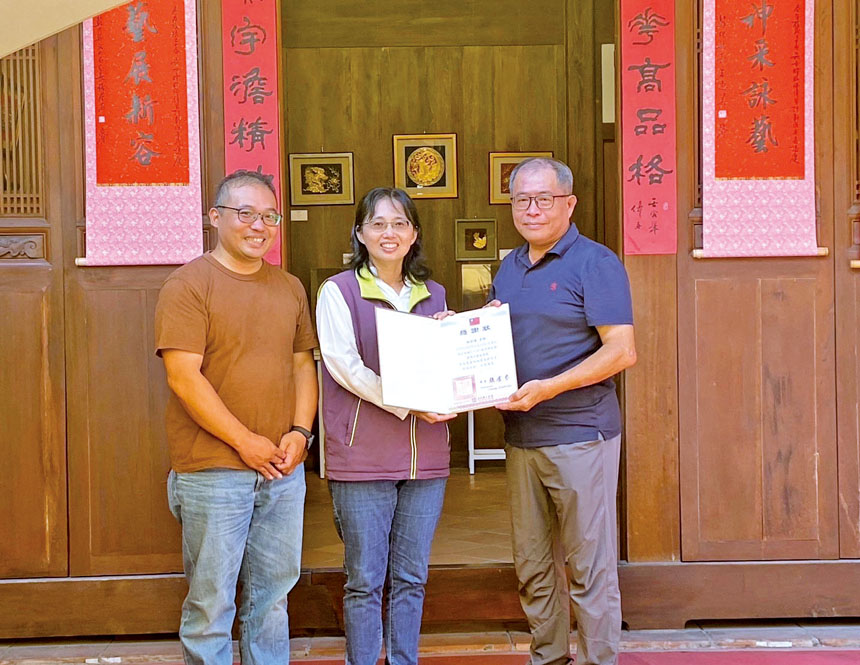 ▲文化局長張雀芬贈感謝狀給施世曈。