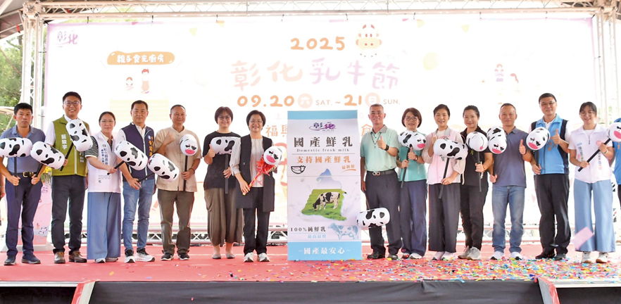 彰化縣為畜牧業大縣,是全國重要的畜禽產地,為推廣彰化縣優質畜禽產品,彰化縣政府辦理四場「二O二五彰化畜產嘉年華-歡慶五載.週週精彩」系列活動。第三場「二O二五彰化乳牛節」二十、二十一日在福興穀倉登場,彰化縣長王惠美二十一日上午前往活動會場,與出席貴賓共同推廣在地優質乳品。
