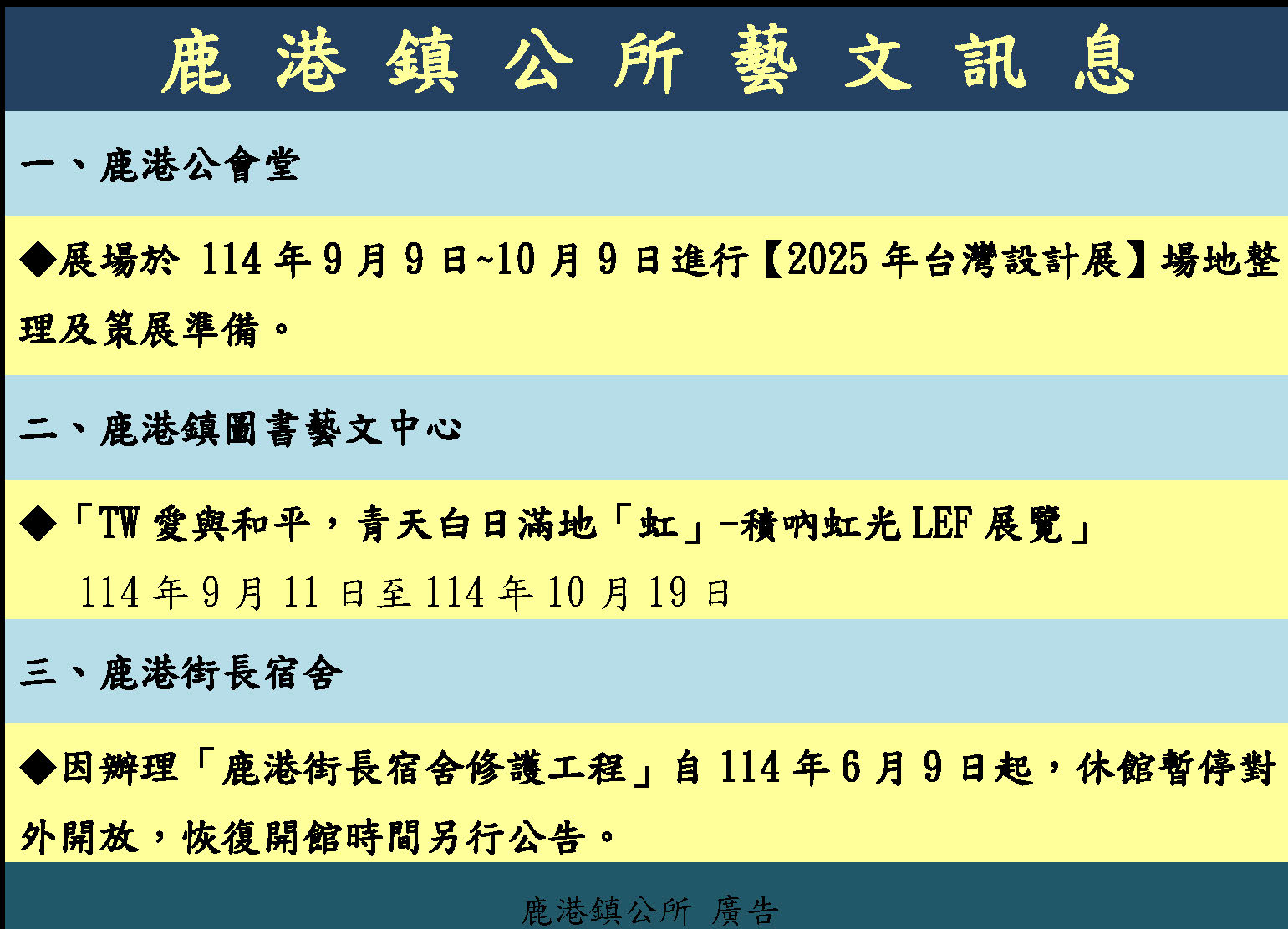鹿港鎮公所藝文訊息