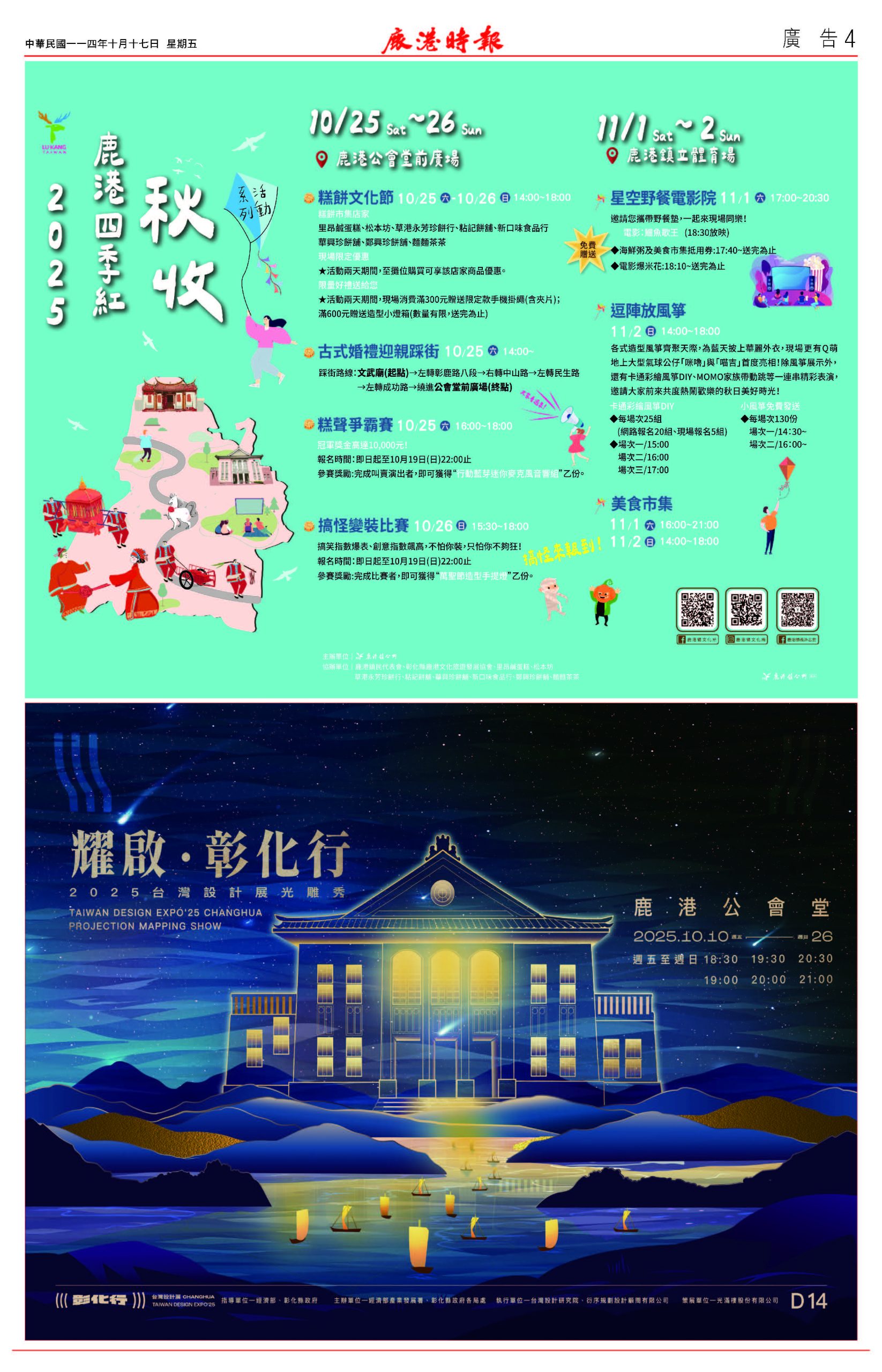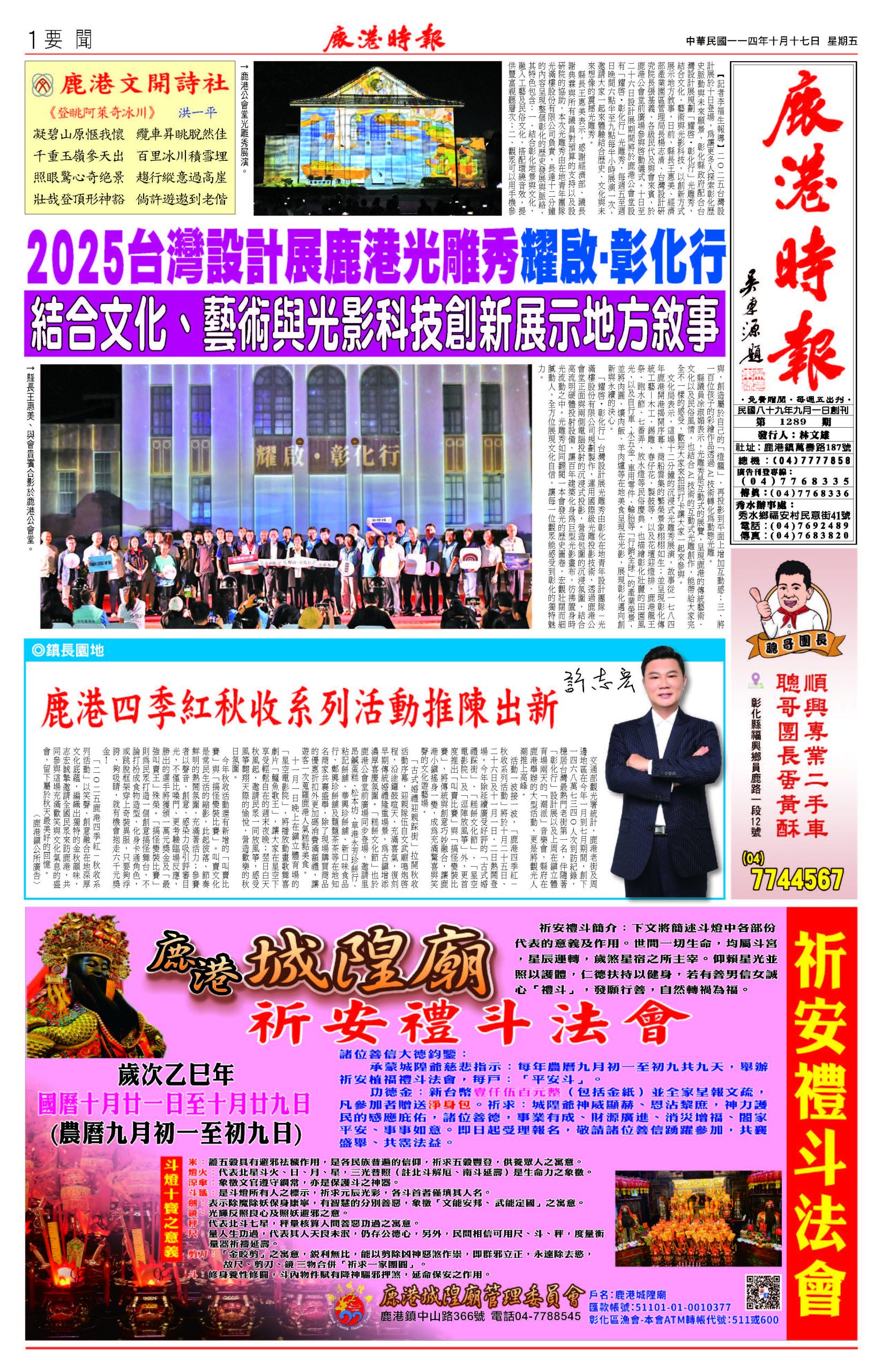 2025台灣設計展鹿港光雕秀「耀啟•彰化行」 結合文化、藝術與光影科技創新展示地方敘事