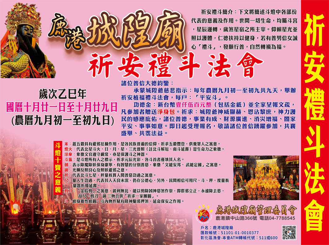 鹿港城隍廟祈安禮斗法會 祈求風調雨順國泰民安