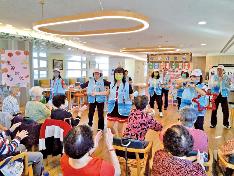 柳月琴與二胡合奏〈純情青春夢〉,樂聲婉轉悠揚,勾起長輩青春的記憶,不少人輕聲哼唱,讓人彷彿回到青春時光。隨後的帶動唱〈天公疼憨人〉與〈可愛的玫瑰花〉更是將氣氛推向高潮,不少長輩站起來跟著一起搖擺。