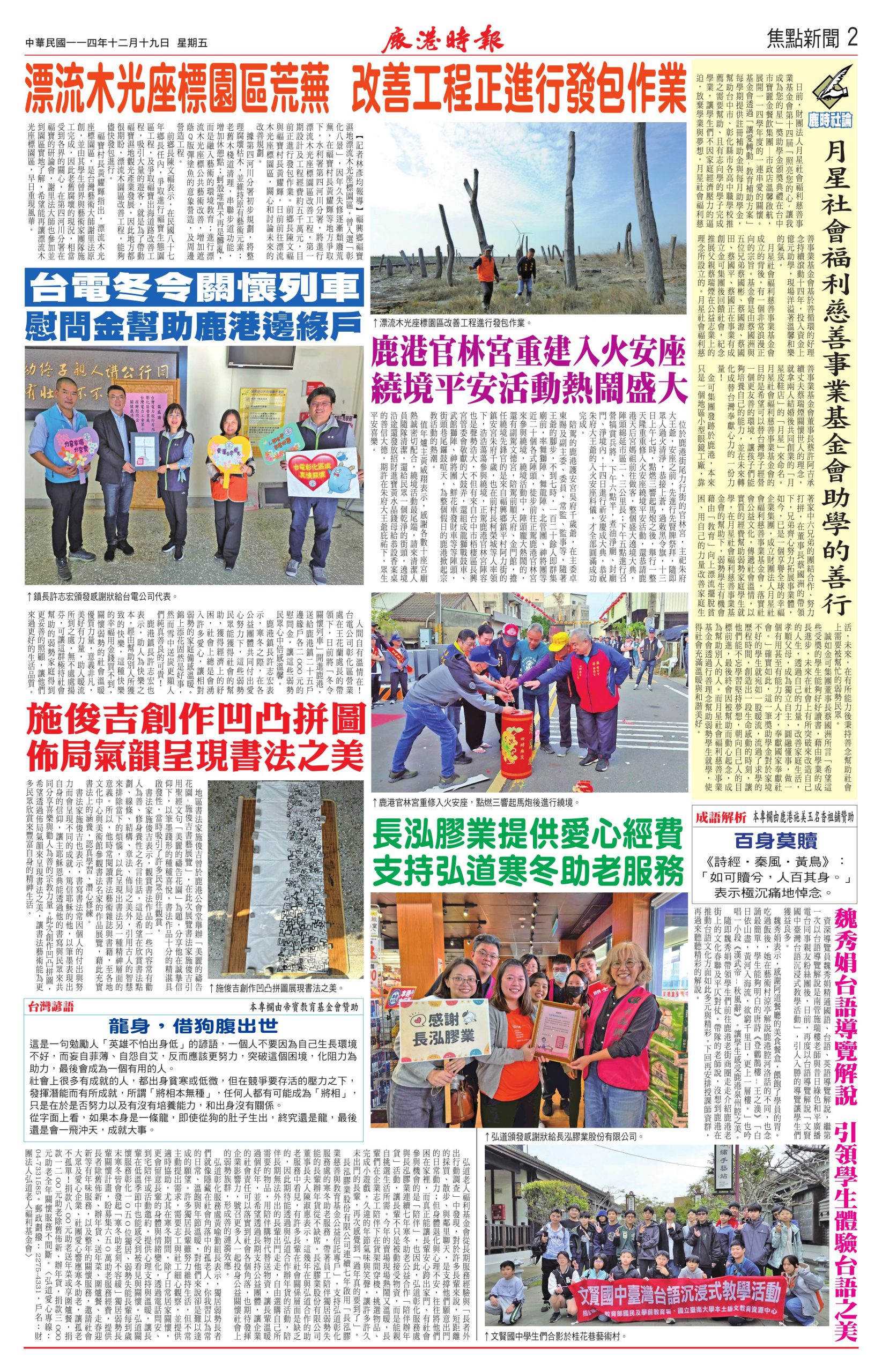 台電冬令關懷列車 慰問金幫助鹿港邊緣戶