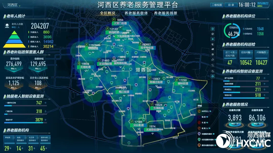 2025年,河西區累計提供居家養老服務量超125萬客次,養老服務金額近2800萬元,養老服務機構床位總數超2800張,老年群體平均滿意度超90%。