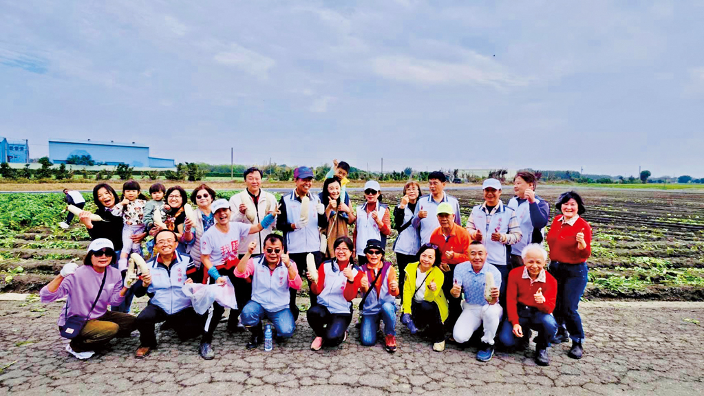 ▲幸福學堂成員採收蘿蔔後合影於蘿蔔田旁。