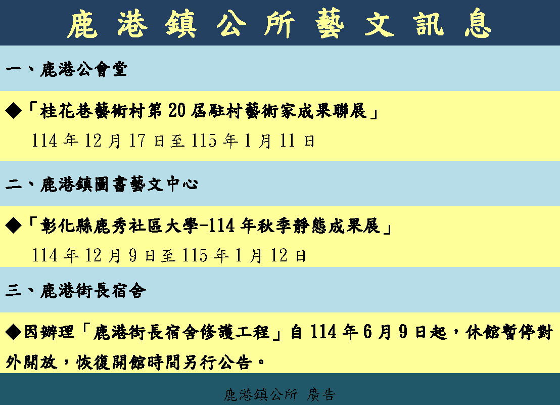 鹿港鎮公所藝文訊息