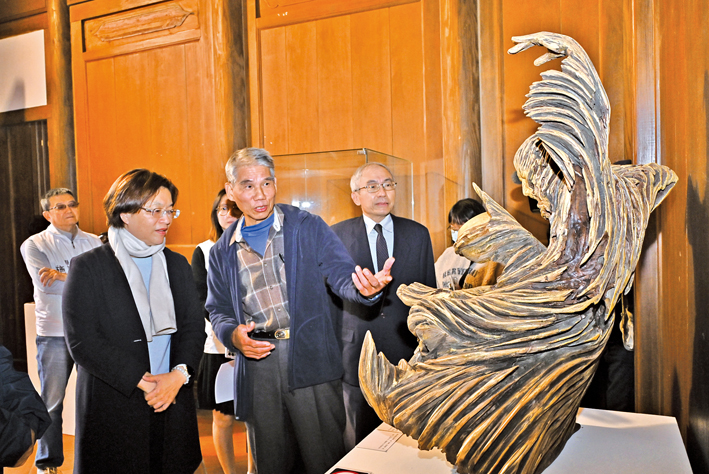 縣長王惠美指出,黃老師長期擔任國家工藝獎、國際木雕競賽及各類工藝展評審,投入工藝教育與人才培育,對工藝傳承貢獻良多,二O二四年更榮獲「臺灣木雕薪傳成就獎」,為其在創作、傳承與文化推廣上的付出給予肯定。本次展覽延續黃國書老師彰化縣美術家接力展第七十九棒展覽的精神,展出雕刻作品十一件與鋼筆畫八幅,雕刻作品以內斂而深刻的造形語彙,描繪鄉土生活、生命修行與內在覺醒的歷程;鋼筆畫則記錄鹿港巷弄、老街與日常風景,留存許多今日已難再見的城市記憶,彌足珍貴。