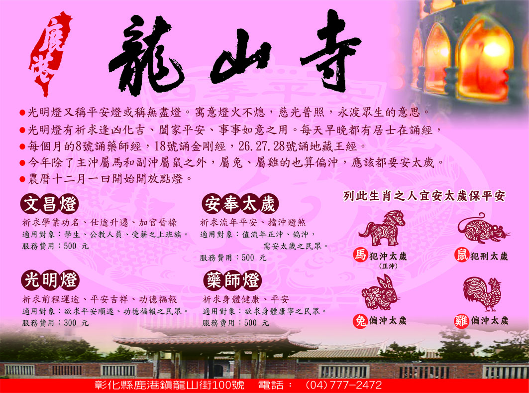 鹿港天后宮平安祈福點燈吉馬好年行大運 安太歲光明文昌拜斗贈精緻天后鑰匙圈