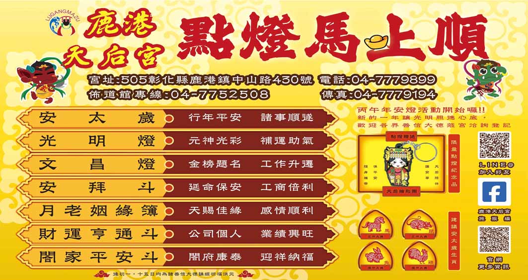 鹿港天后宮平安祈福點燈吉馬好年行大運 安太歲光明文昌拜斗贈精緻天后鑰匙圈
