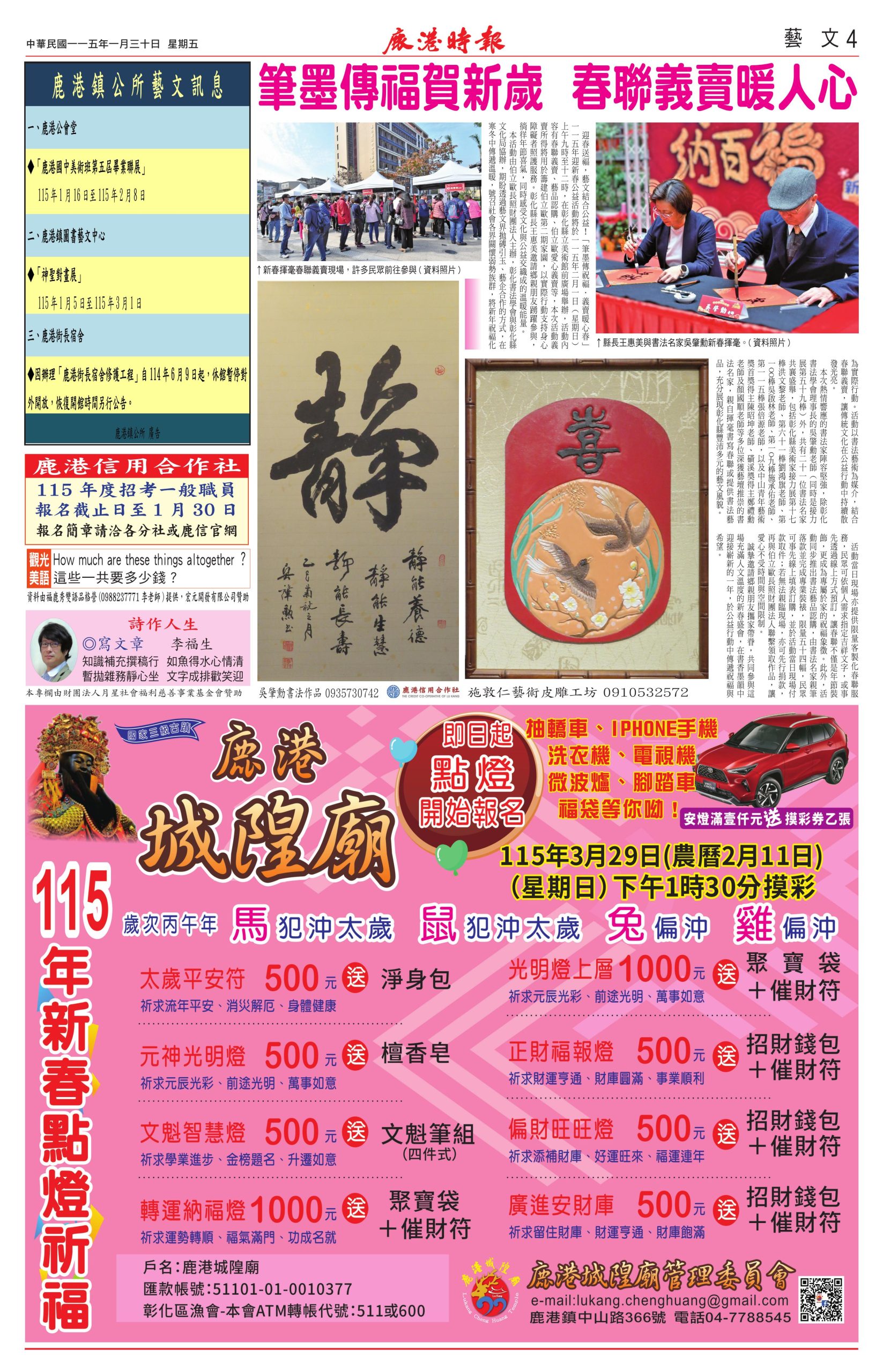 鹿港城隍廟115年新春點燈祈福