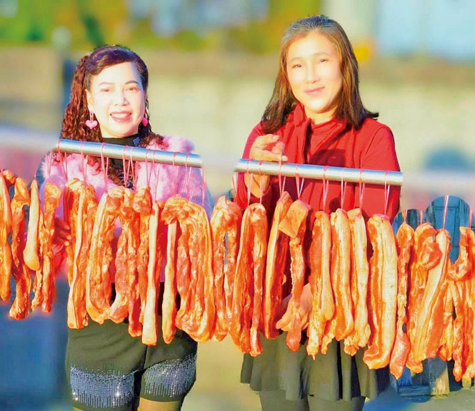 林碧芬也表示,她親手製作的紅麴養生臘肉,色澤並非依賴添加劑,而是源于素有「養生紅寶石」之稱的紅麴粉。紅麴不僅是天然色素,其豐富的有益成分,更為這道傳統腌臘製品賦予了健康的深層内涵。她以舞蹈排練般的嚴謹對待每一个步骤:精選肥瘦相間的上等五花,以恰到好處的力道揉搓入味的秘製紅麴腌料,再將其懸掛于通風之處,猶如靜候一場緩慢而盛大的風味轉化。