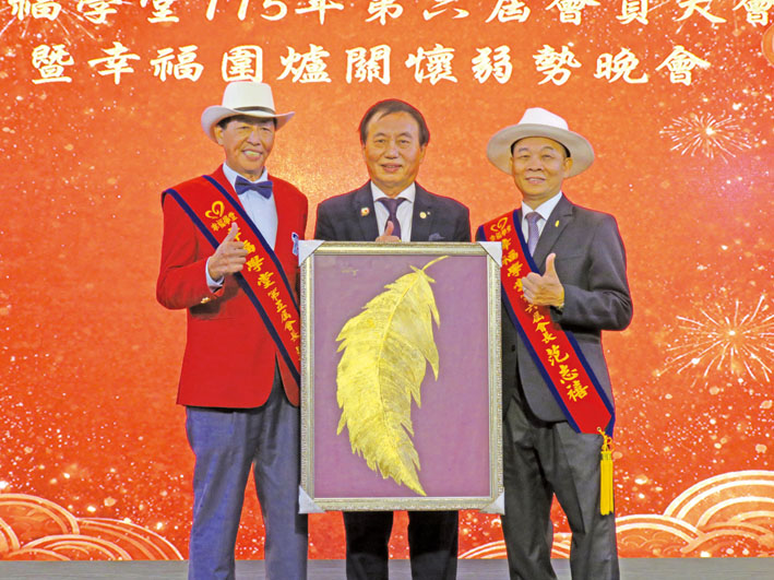 【記者李福生報導】《幸福學堂》由創會長紀慶堂於八年前所創立,致力推動社會善行社會,用愛來溫暖每一顆需要的心,給予民眾最真誠的擁抱與呵護,《幸福學堂》每年所舉辦歲末幸福圍爐餐會,由會員們與社會愛心人士自發性發揮愛心認桌,以實際的行動來關懷社會上的弱勢民眾。一月二十四日在福興「二鹿京華喜宴會館」舉辦第六屆會員大會暨幸福圍爐關懷弱勢晚會,由第五屆許坤鑫會長交接給第六屆范志禧會長,進場式由彰化家扶電音三太子引領會長團熱鬧進場,接著家扶電音三太子於舞台進行精彩的表演,主辦單位邀請幸福大樂團進行薩克斯風表演、歌手蔡多多歌曲演唱、唐寶寶大器樂團表演。此次所募集的善款幫助彰化家扶、弘道老人福利基金會、喜樂保育院、脊髓損傷重建協會、伯立歐小兒麻痺關懷協會、慈愛教養院與彰化視障協會,讓這些弱勢民眾在農曆年前能感受到社會上陣陣溫情。