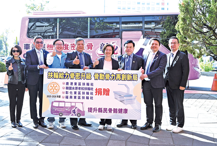 【記者林彥均報導】彰化縣政府日前在衛生局舉辦「扶輪給力骨密升級,骨動骨力再創新局」扶輪社捐贈骨質密度檢測儀記者會,由縣長王惠美代表接受捐贈。此次活動展現本縣自一O八年推動骨質密度社區巡迴篩檢以來的豐碩成果,感謝國際扶輪社3462地區、鹿港東區扶輪社長謝一清、彰化東區扶輪社長劉燦霖、福興東區扶輪社長陳鼎中以及韓國水原老松扶輪社,與以上全體社員,共同捐贈全球獎助金超過新台幣二一O萬元,全力支持本縣推動骨質密度社區巡迴篩檢服務,攜手守護縣民骨骼健康。