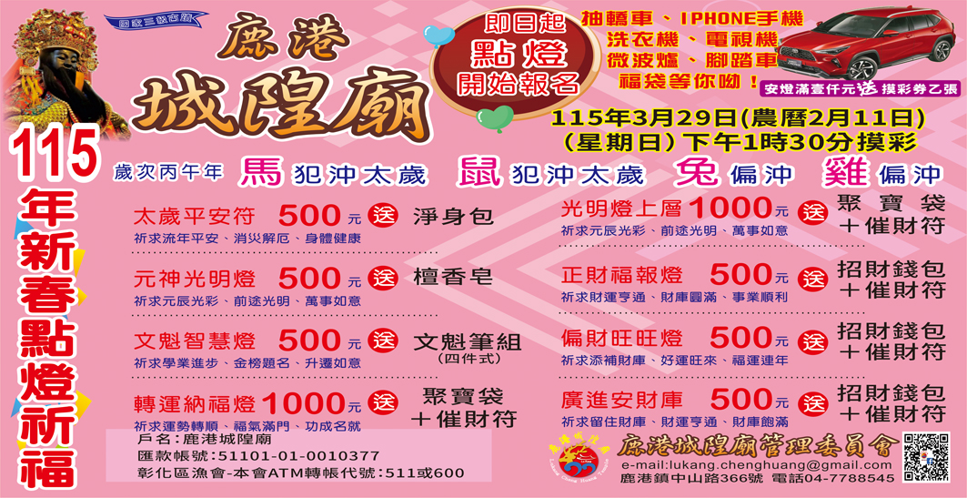 鹿港城隍廟115年新春點燈祈福