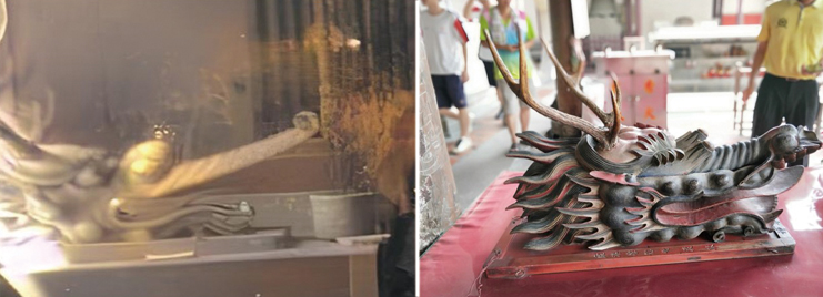 ▲鹿港龍山寺原祀龍王尊神與郭天來大師重新塑龍王尊神。